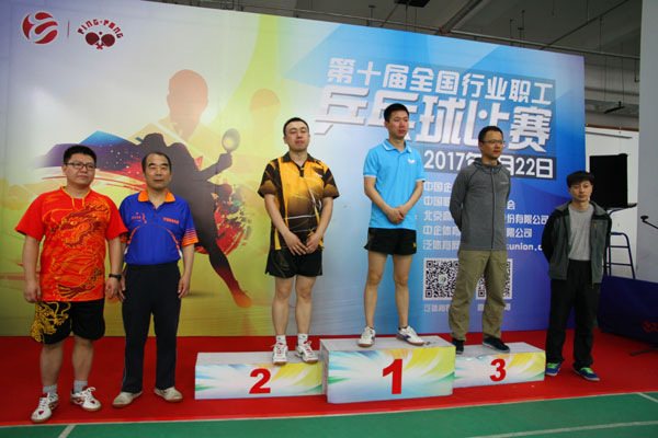 经过激烈的争夺,金融体协、石油体协和电力体协代表队分别占据了混合团体三甲;来自金融体协的孔令昭、建筑体协的齐家栋和石油体协的袁磊分别荣获男子单打冠、亚、季军;来自金融体协的周昕彤、石化体协的郑洋洋和前卫体协的石胜男,则分别夺得了女子单打冠、亚、季军。