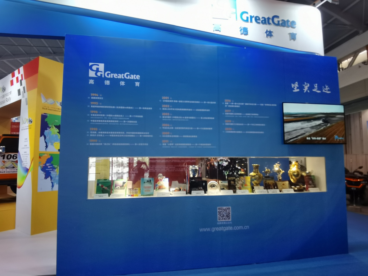 一个彩色发车门、一辆炫酷越野车,再现了由B体育与云南省政府共同创办的 “一带一路﹒七彩云南”国际汽车拉力赛的发车场景,使本就在门口位置的展位格外引人注目。